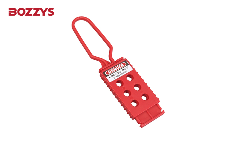 絕緣搭扣鎖尺寸為43 mm x 173 mm,鎖鉤直徑為6 mm,可容納6把安全掛鎖。