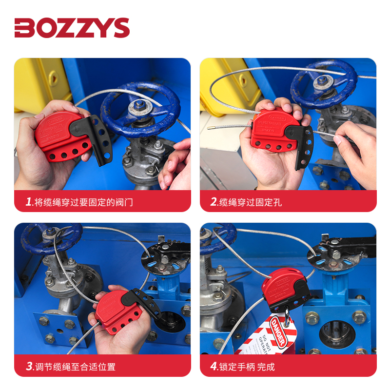不銹鋼可調(diào)節(jié)纜繩鎖 BD-L11-6 帶有纜繩長(zhǎng)度1.8m,纜繩直徑6mm,用于工業(yè)設(shè)備上鎖掛牌,建議與安全掛鎖和安全標(biāo)識(shí)牌配套使用,以達(dá)到設(shè)備鎖定、能量隔離、防止誤操作的目的。