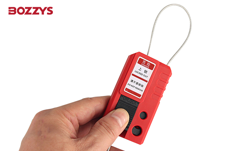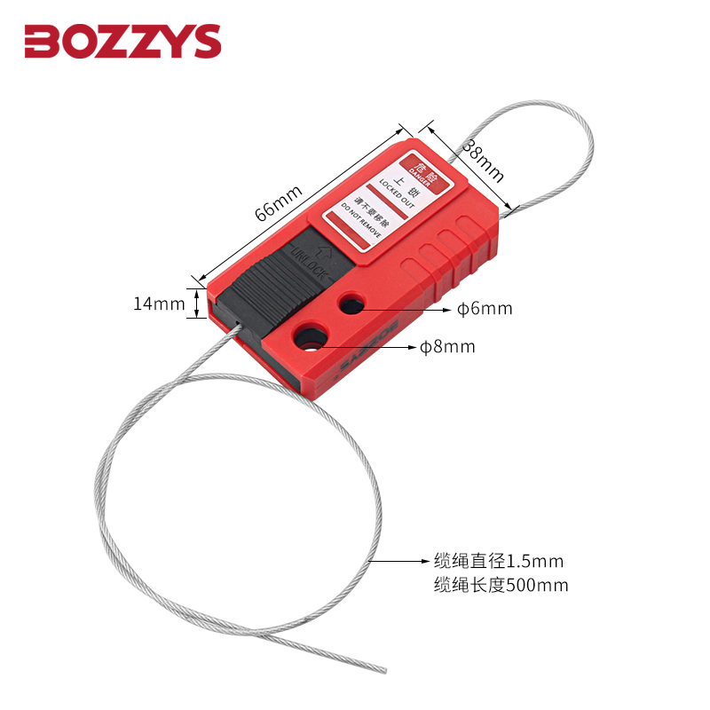 微型纜繩鎖BD-L42配有0.3m/0.5m不銹鋼纜繩(纜繩直徑1.5mm),纜繩外層由抗紫外線PVC制成,適用于斷路開關和小型閘閥等設備鎖定,以防止意外操作。