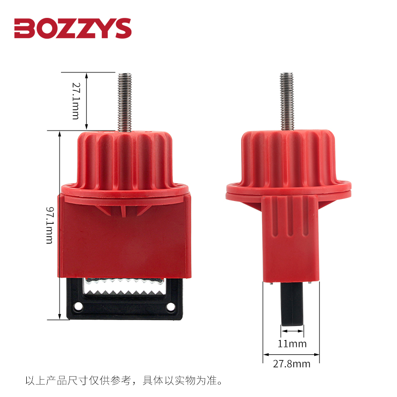 BOZZYS可調節(jié)蝶閥鎖BD-F22適用于部分蝶閥鎖定,閥桿范圍:寬≤42mm;手柄開口≥14.5mm;高5-35mm。多功能開口夾適合部分封閉環(huán)和寬手柄,不銹鋼鋸齒設計,使鎖具緊密固定在蝶閥手柄上,不易松動,無需安裝工具,自帶鎖緊螺絲旋轉手輪,可調節(jié)蝶閥鎖固定在手柄合適位置,轉動手輪鎖緊,再對產(chǎn)品進行上鎖,上鎖狀態(tài)更加穩(wěn)定。采用高強度、耐熱性好、耐沖擊,耐腐蝕的聚丙烯PP材料,耐高低溫-30~140℃ 適用于各種惡劣的作業(yè)環(huán)境。