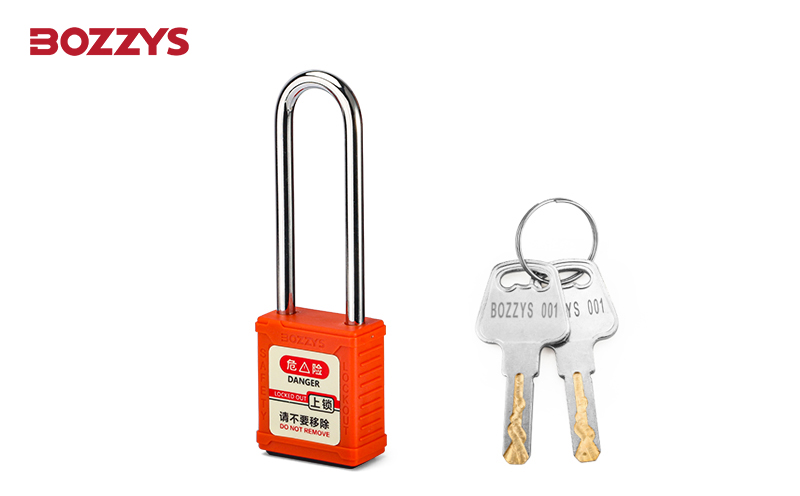 工業(yè)安全掛鎖打開,鎖梁旋轉至側、后面不能被壓下去,防止虛假上鎖,為防止誤操作留下隱患。