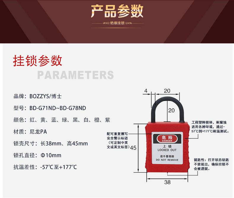 【安全鎖具選型--工程安全掛鎖-超聲波絕緣細(xì)梁掛鎖BD-G71ND介紹】