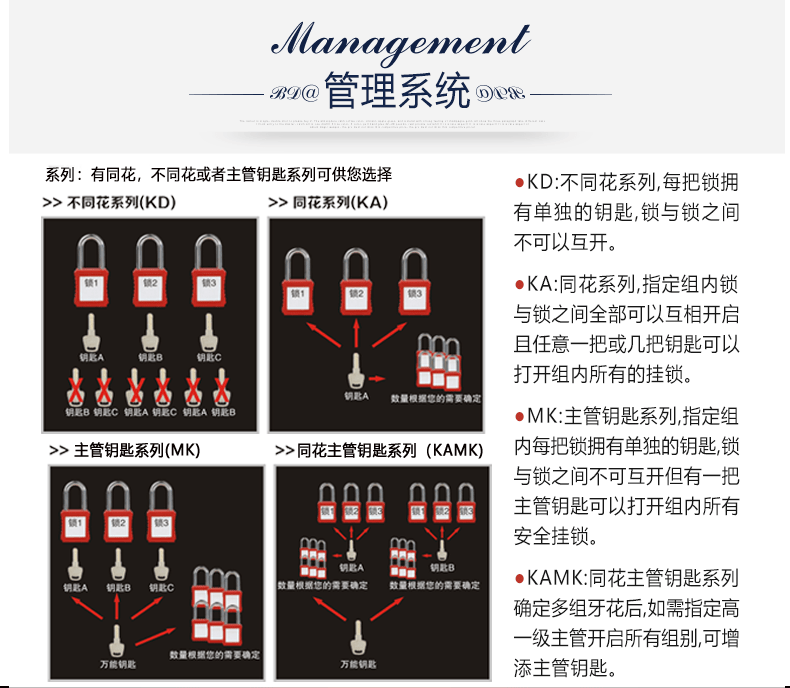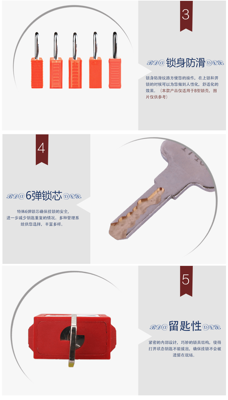 使用范圍:工廠、建筑場所、醫(yī)院、化工、電廠等工業(yè)場所;為上鎖/掛牌所設(shè)計(jì),使用更廣泛的安全鎖具。