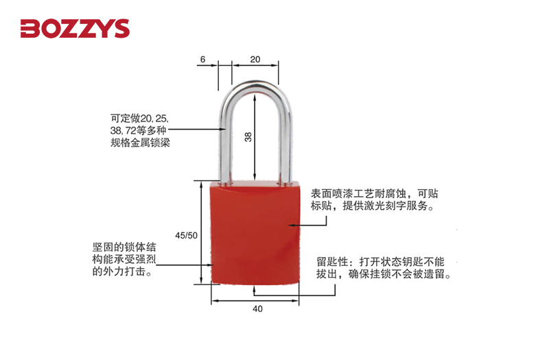 規(guī)格:鎖體(長(zhǎng)40mm 高45mm鎖梁38mm 粗6mm)