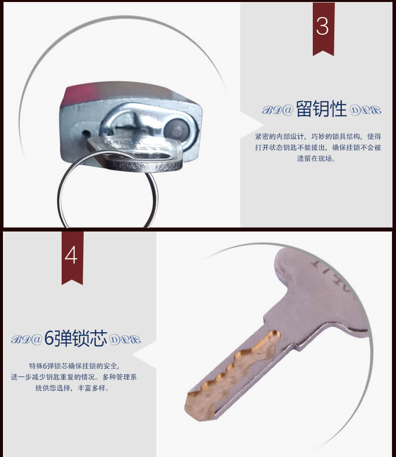 d.留匙特性一確保掛鎖不會(huì)再打開(kāi)狀態(tài)被留在現(xiàn)場(chǎng)。