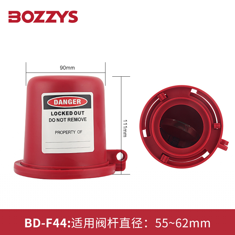 BOZZYS 旋塞閥鎖 BD-F44采用高強度、耐熱性好、耐沖擊,耐腐蝕的工程塑料PP材料和不銹鋼鎖緊帶制成,耐高低溫-30~140℃;尺寸緊湊,但高度可見且易于使用,適用于底部孔徑適用閥桿直徑(手輪直徑):在55mm-62mm之間。使用狀態(tài)下,鎖定裝置的底座可以保持在原位,底座通常不會干擾扳手或可拆卸手柄的閥門啟動;旋塞閥鎖定裝置設(shè)計用于安裝在旋塞閥的閥桿上并防止閥桿連接,有效的適用于難以鎖定的旋塞閥。帶有醒目的安全警示標(biāo)簽,支持語言種類、版面調(diào)整、LOGO定制,適用于各種惡劣的作業(yè)環(huán)境;建議與鋼制掛鎖和安全標(biāo)識牌配套使用,以達(dá)到能量隔離、設(shè)備鎖定、防止誤操作的目的。